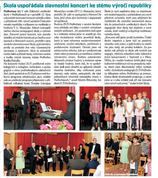 Úvod > O škole > Škola v médiích > Koncert ZUŠ ke 100. výročí založení republiky, Region Podbořanska